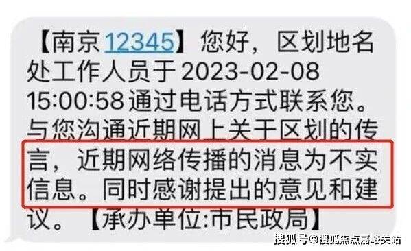 在当时曾有市民第一时间拨打南京市12345热线留言求证,南京市民政局区划地名处相关工作人员回复: 网传关于南京区划“调整”的信息都是不真实的。
