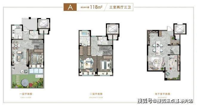 约134平下叠4房户型,紧邻贝港河畔,纯美水岸筑造诗意栖居,全房共有2层并附赠全明地下室,地上首层为生活区,设计南向绿化空间,做到真正的有天有地有花园!