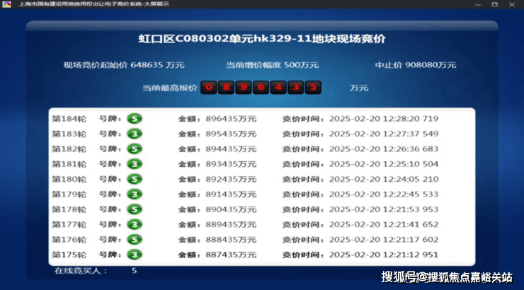 2025年2月,今年第一批次土拍中, 经过 184轮 竞价, 金茂&庆隆联合体 以总价896435万元竞得 虹口C080302单元hk329-11地块,溢价率38.2%,折合 楼板价117474元/㎡,装修标准不小于4000元/㎡。
