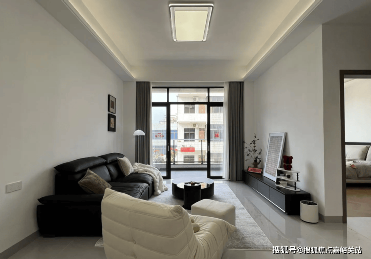 硬装虽简单,但是摆放了一套新中式风格的实木家具后,整体效果看起来反而有稳重、大方的氛围。