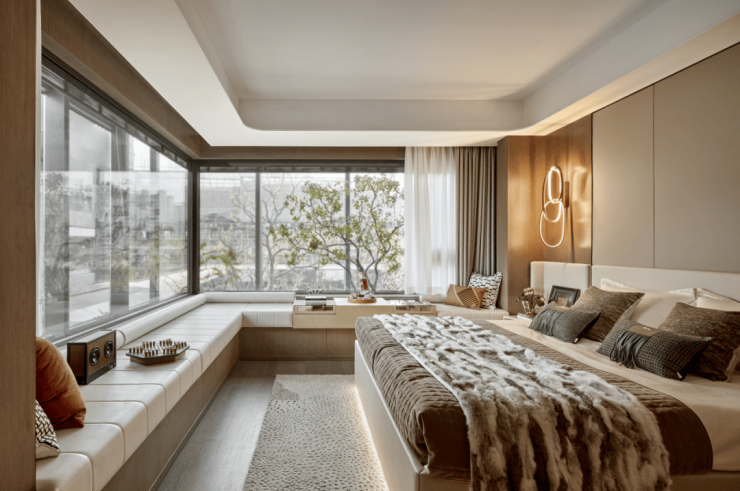在集中绿地率近10%、沉浸式生态景观的加持下,结合整个小区的轻奢立面,从主卧270°超大面宽飘窗看出去,春雨万物萌新、夏季绿树碧空、秋日硕果累累、冬雪仍有常绿,就是随四季变换的巨幅画卷。