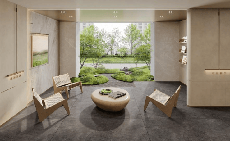 归家礼序如山水画卷般徐徐展开:北侧人行出入口现代门厅尊贵大气,品质叠水、特色雕塑、精致矮墙、特选树木,听觉与视觉交叠打造归家仪式感。步入庭院,层层绿意之中的小景与精致会客厅入眼,瞬间扫除一天的疲惫;即便在特殊天气,风雨连廊仍能让业主感受景致与格调。