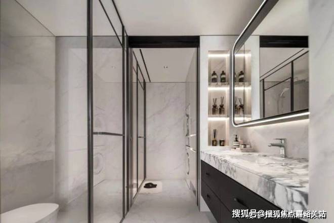 公卫打造独特的四分离系统, 实现独立洗漱台、卫生间、淋浴间、洗衣区互不打扰,将酒店化体验引入住宅。