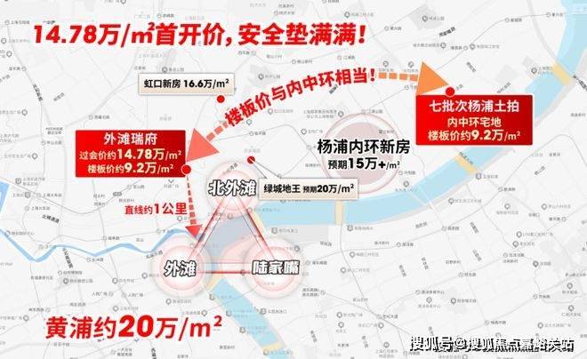 值得关注的是,上海七批次土拍中,杨浦内中环宅地的楼板价已达 约9.2万/㎡——这一价格,与外滩瑞府楼板价相当