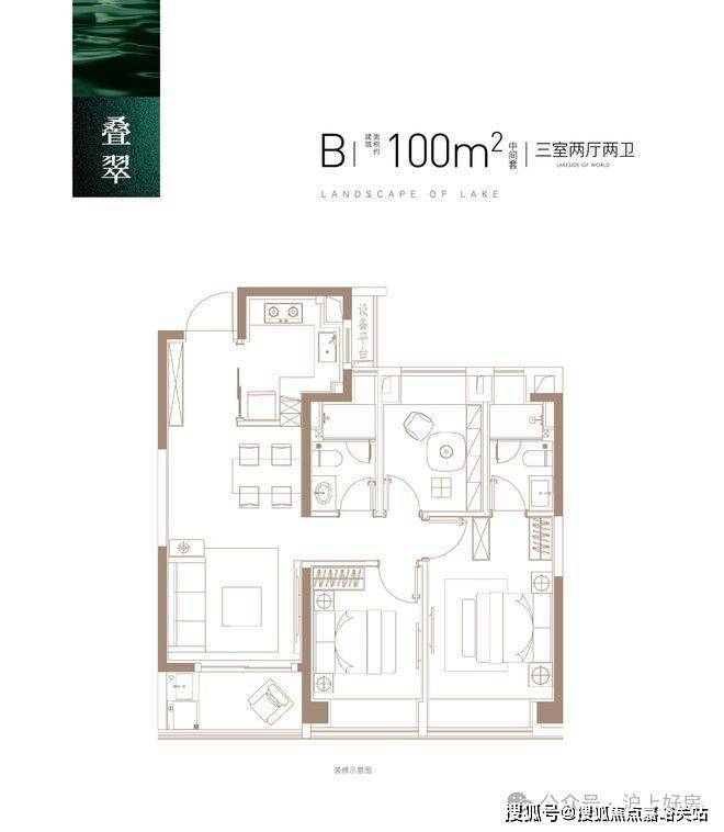 建面约100㎡3房2厅2卫, 做到了三开间朝南+主卧套房设计+动静分离+全卧室带飘窗,功能性和尺度感完美结合的3房户型。映翠府售楼处电话4008569058☑️☑️