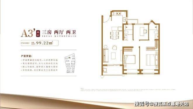 具体细节方面,项目目前只有一个建面约100㎡三房的样板间,带软装后面宽约3.3米,吊顶后层高约2.73米。