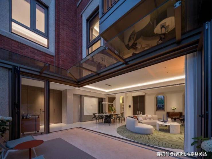 无界空间 :客厅270度转角无柱设计,搭配落地玻璃,开阔视野将院中风景迎入日常。