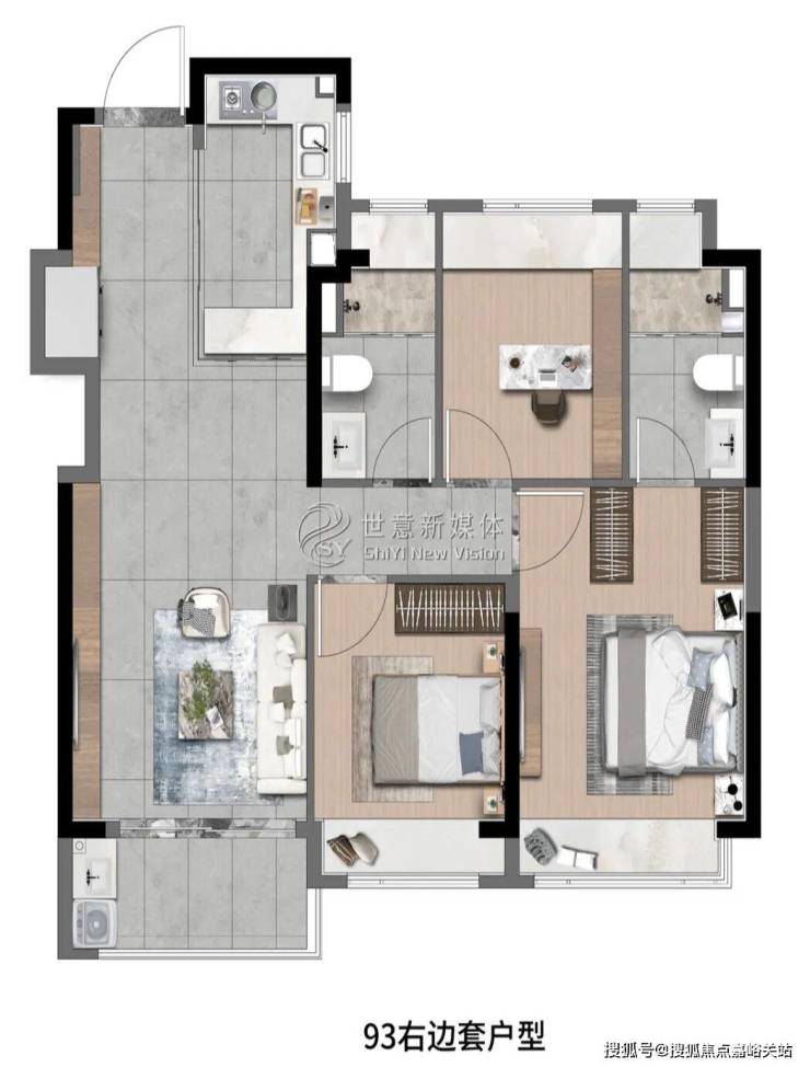 象屿深入考量空间与场景的运用,将生活中看得见与看不见的细节进行了细致打磨。玄关、阳台、厨房、卫浴均设置科学收纳空间,营造高品质生活体验的同时,更带给居者层建面约83㎡3房2厅1卫