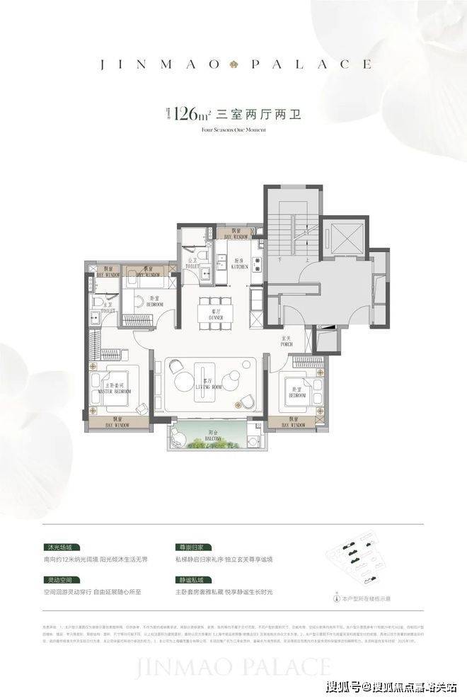 建面约126㎡横厅3房:一步到位顶奢3房,全杨浦没有竞品。