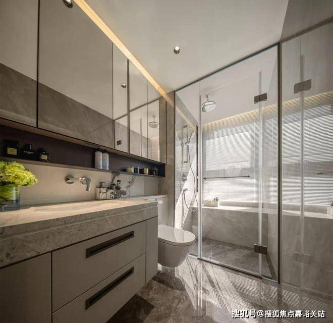 杜拉维特的台盆、壁挂智能马桶,高仪的龙头、淋浴花洒在江湾金茂府卫生间聚首,同级别新盘极少有这样的配置
