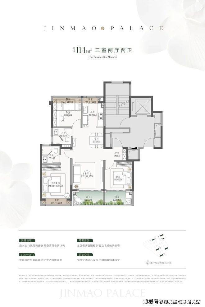 建面约114㎡3房:约700万级低总价上车首选,闭眼可冲。
