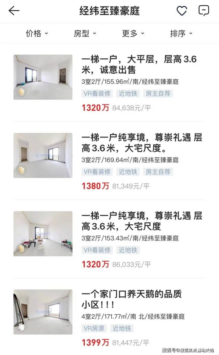 至臻豪庭的前期房源还未成交记录,挂牌已经达到8.1-8.6万/㎡。