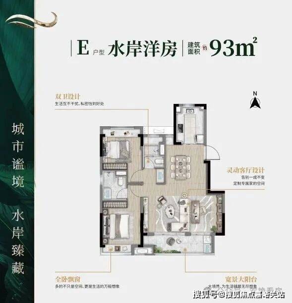 建筑面积约122㎡的水岸联排别墅和56-70-93-127㎡水岸洋房产品搭配,满足不同业主居住体验需求。其中E户型和F户型水岸洋房更是采用大牌精装交付,