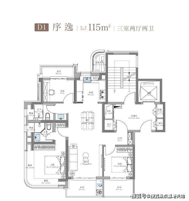 先来看建面约115㎡三房,这也是我认为在全上海都堪称没有对手的户型。