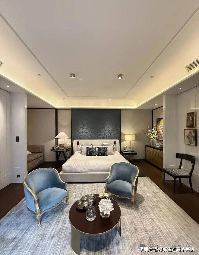 空间布局以满足日常需求为主导,休憩、梳妆、阅读,各功能区划分清晰,同时增加了与户外景观的联动,引景入室,内外呼应。