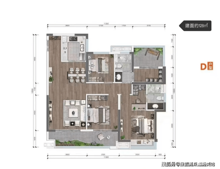 面积:96-128㎡