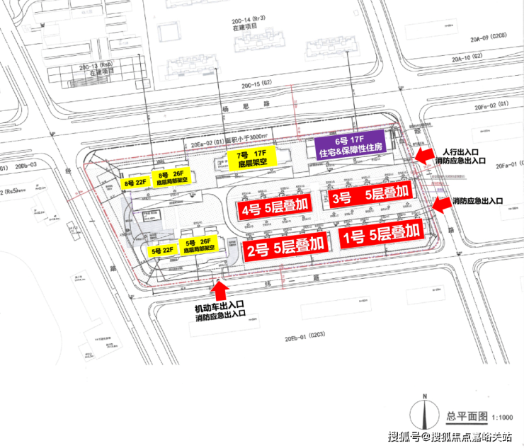 从规划方案来看,「翡雲悦府」二期楼栋的分布总体呈南低北高,东低西高的格局。 东南侧分布4栋叠墅,西侧排布2栋22-26层的大高层,北侧排布2栋17层的高层, 地块内保障房位于东北角。