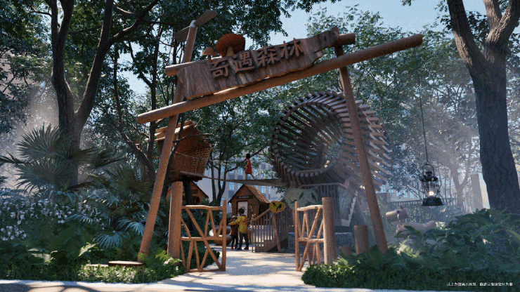 金茂璞元摒弃传统社区儿童游乐设施的固化模式,依托社区地势,打造出一个可以激发肢体协调与冒险精神的奇遇森林