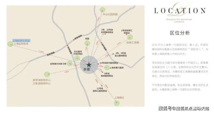 距离虹桥交通枢纽6.5公里左右,出差便利。产业、交通、配套齐聚,且周边就是古北壹号、古北臻园,圈层纯粹!