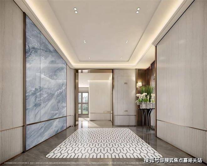 招商臻境售楼处电话:400-856-9058☑️☑️大堂内部,氛围、灯光、装潢都非常具有格调,奢石背景墙搭配海派地砖拼花,将静奢海派的艺术展现的淋漓尽致。