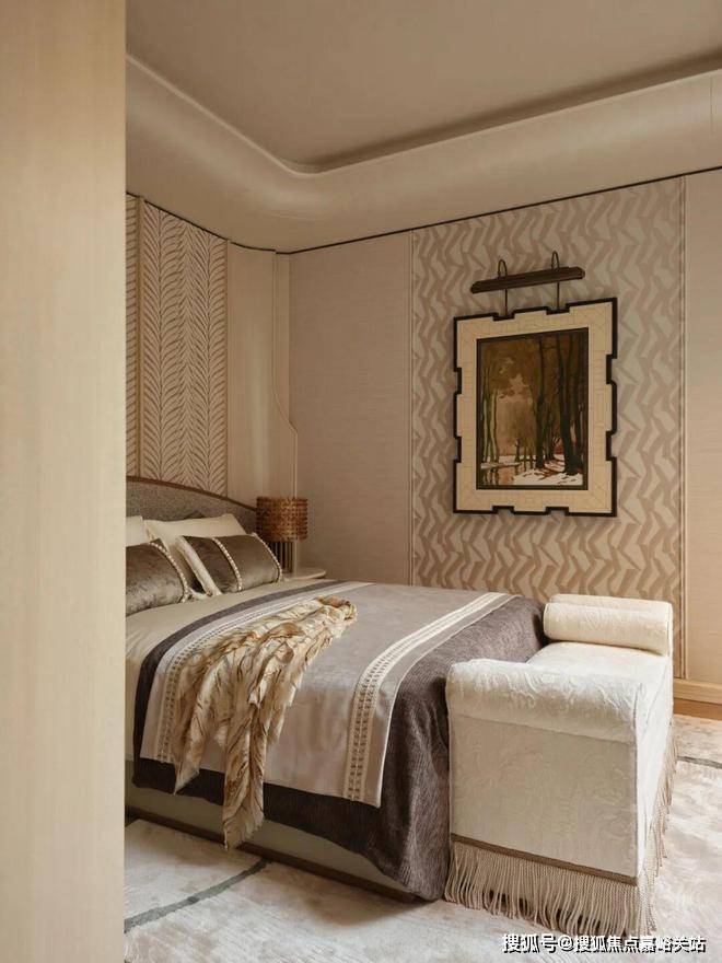 主卧套房,每一处细节皆为法式优雅,✨✨✨【弘安里】售楼处电话:4001185086✔✔✔❤❤❤树瘤木与魔鬼鱼皮饰面,彰显“老钱”质感;装饰画《心途》将两人交织的生命轨迹,✨✨✨【弘安里】售楼处电话:4001185086✔✔✔❤❤❤化为空间情感的最终落笔。