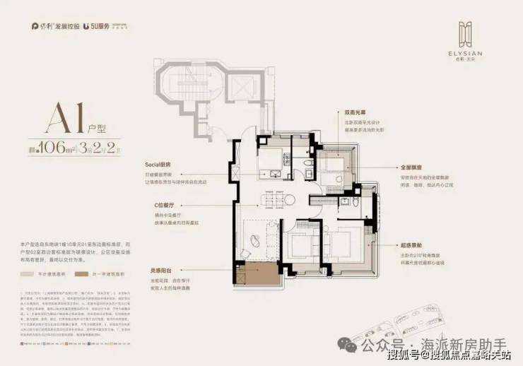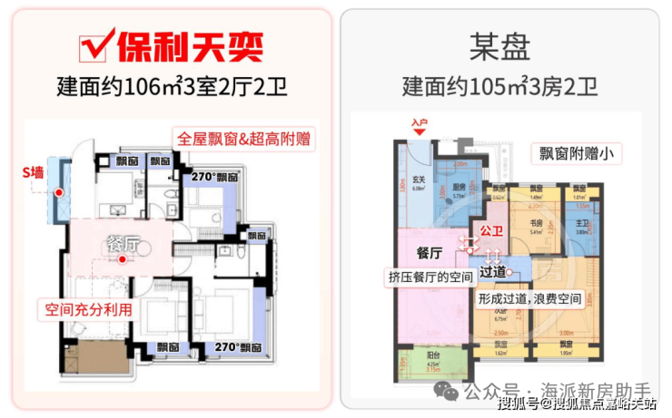 东1#边套: 全屋飘窗+约270°的转角飘窗, 实际空间感十分优秀!