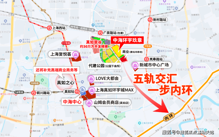 五轨交汇 四站直达静安寺:真如是上海罕见拥有 5 条轨交线的板块,目前7、11、14、15 号线已通车,20 号线预计 2028 年通车。从真如出发,4 站静安寺,5 站中山公园,6 站人民广场,半小时内即可覆盖上海核心商圈。路网方面,内环、中环、北横通道环绕,经曹阳路、武宁路可直达静安,无论是日常通勤还是周末出行,都极为便捷。