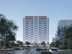 采用现代简约公建化立面,浅灰色仿石涂料搭配香槟金铝板与大面积 Low-E 玻璃,线条简洁流畅,质感通透高级。楼栋错落排布,超宽楼间距保障每户采光与隐私,单元入口双层挑高设计,营造酒店式归家仪式感。