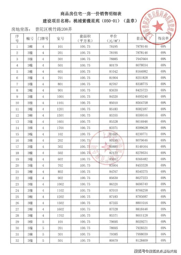 项目一房一价表▼