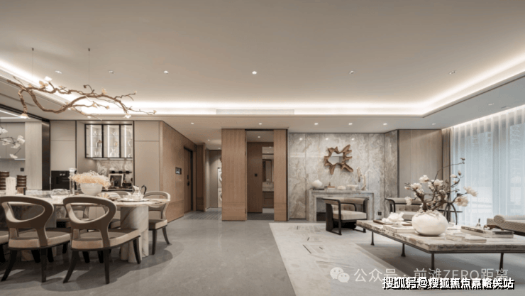 经典十字序列厅:从私享电梯厅开始,经由对开入户门,首先就进入这样一个十字序列厅,视线远处,就是尽头观景台,这条长廊,可以是公私分区的交通枢纽,也可以是彰显主人品味的艺术长廊;