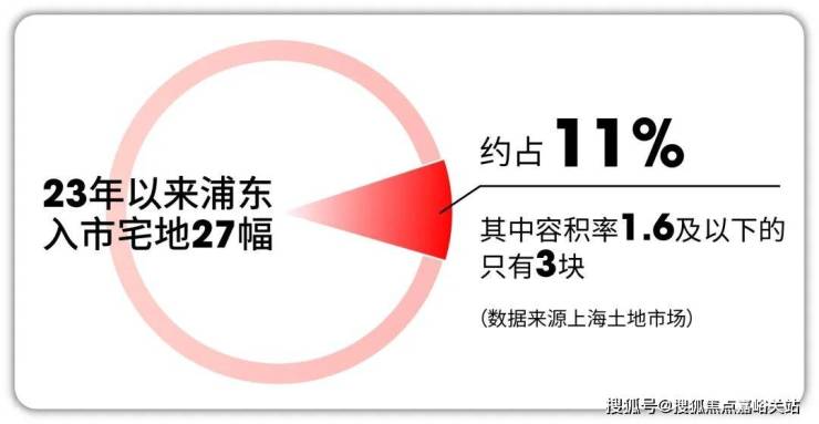 据上海土地官网显示,2023年至今整个浦东入市宅地27块,其中容积率1.6及以下的只有3块,占比仅约11%,其中之一就是金海雲墅。
