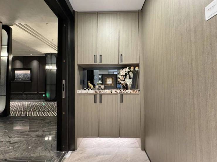 长约35⽶、高约5.1⽶的酒店式归家⻔头,引入价值不斐的名贵黑松,是越秀杨浦天玥给予每一位业主的尊贵仪式感。酒店式入户大堂,精选雪山飞狐奢石,高山流水奢石、星白奢石等奢材,将品质感拉满。同时,酒店式入户大堂溯源海派经典,融入古铜色金属格栅、海派拼花(首层和地下大堂)、海派复古压花玻璃等海派表达,让人文感满满。
