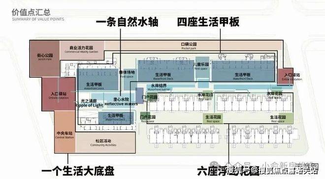 以自然水系为界,生长为独立的城市岛屿,通过六大景观节点,浮水之门、光之通廊、澄心水院、岸野森活、溪语花境、林语归岸,具象生活本应如流水般自在从容。