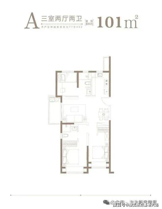 户型解析:三开间朝南+双朝南卧室带飘窗+动静分离+卫生间干湿分离,这样的三房设计,对于上海首套置业购房者来说,非常友好,未来想要做置换,也比较容易出手。