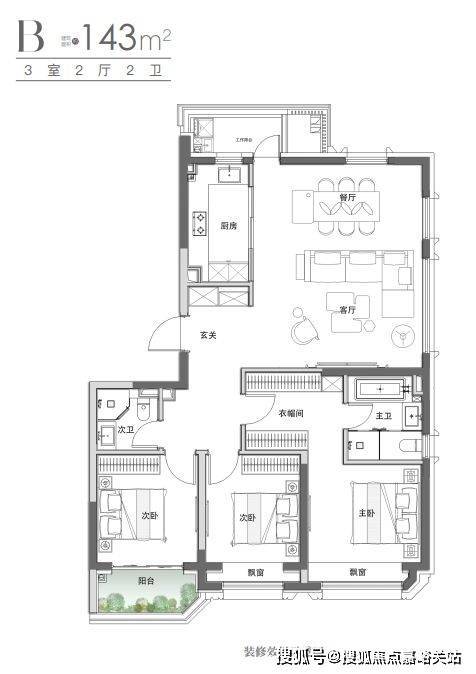 2、143㎡户型,更大的空间尺度和舒适感。这种户型敢于“浪费”空间,用空间来换取心理上的尊贵感和舒适度,这种户型并非普通住宅,而是一种生活方式的宣言。