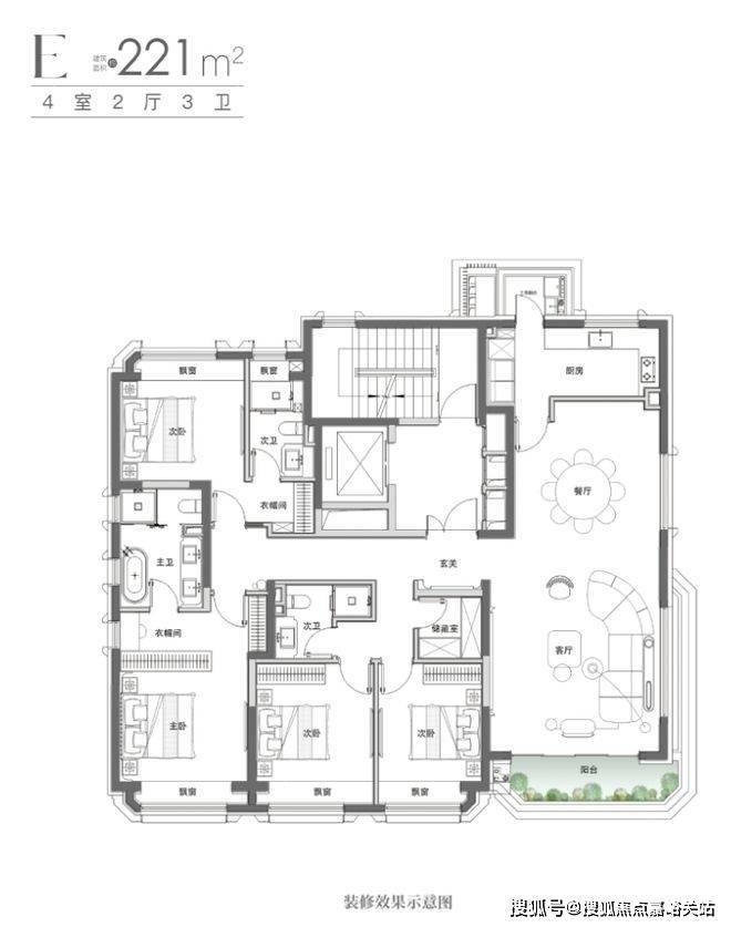 3、221㎡户型, 这是一个可以居住十年、二十年甚至更久的“终极居所”。它能够从容应对家庭生命周期的各种变化,叠加一梯一户一层的设计,提供给业主 高品质、私密、便捷且安全的居住体验。