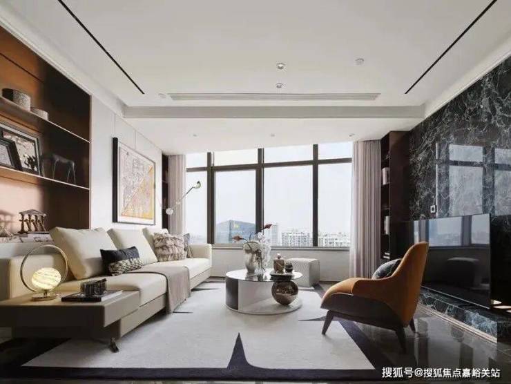 客厅270°采光面,配置弧形沙发,窗前可见上海经典三件套;