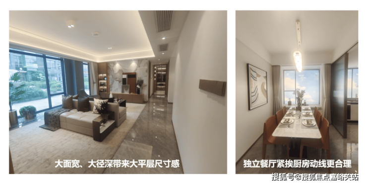 大面宽纯客厅的设计,让人眼前一亮, 餐厅与客厅空间分离,功能划分更加彻底