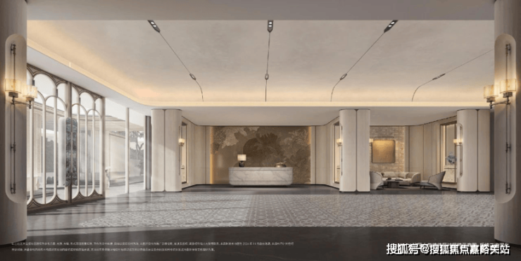 从步入社区大门开始,约70米超大尺度门庭、奢华酒店般的港湾式落客,就将仪式感便顶格拉满;星级酒店大堂,内部多处装置融合非遗技艺美学,生活在尊贵与艺术之间巧妙平衡;进入下沉式中庭花园,归家路上移步异景;单元入户入口延续奢华酒店质感,采用奢石与铝板叠加的奢华设计,碰撞法式圆润线条,仿佛艺术殿堂。