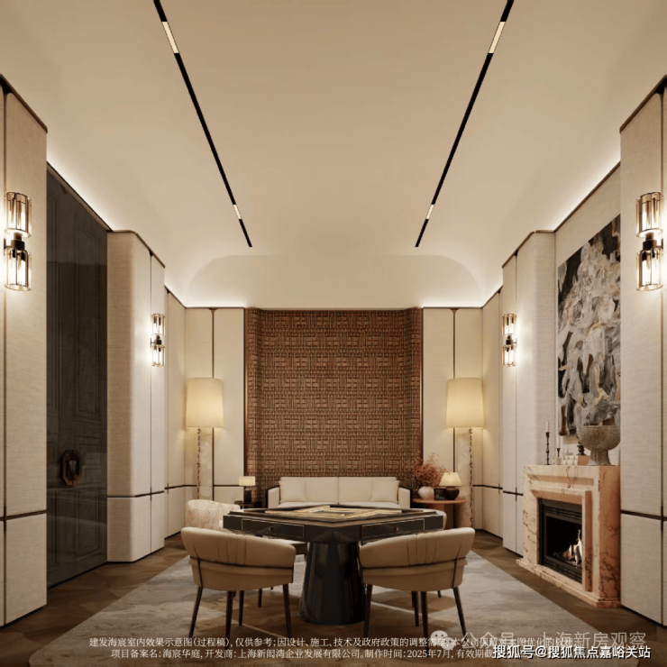 示范区以“玉兰门庭—迎归大堂—莳花荟”为核心轴线,运用非遗技艺与奢贵石材打造。约65米长玉兰门庭融合海派元素,9米挑高迎归大堂,汇集多位艺术家跨界作品,莳花荟中央会客厅再现海派社交场景。