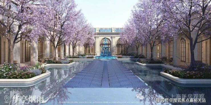 以水为引,起承转合,以海天华堂、华亭烟雨、凤亭问泉,清涟夜月、黄浦秋涛等景观组团,悠然铺陈东方院落式归家礼序。
