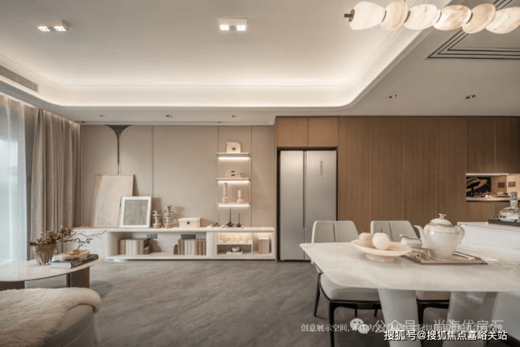为此,招商·时代潮派|东屿设计了一面S墙,可以放下一个超大的双开门冰箱。