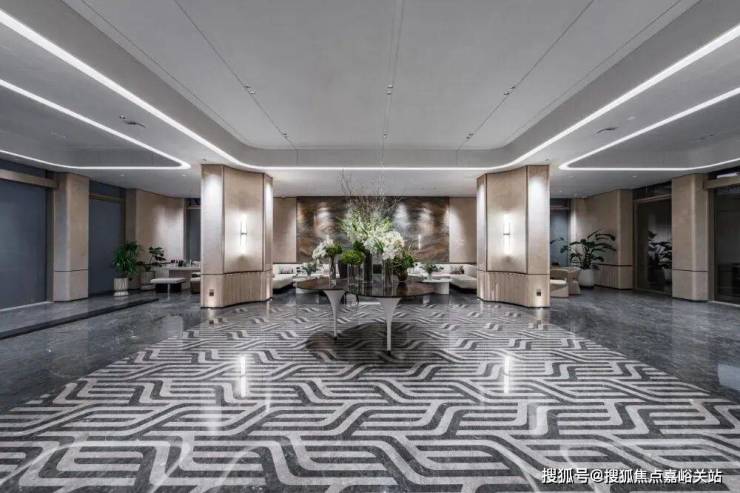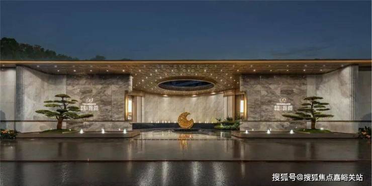 以星级精奢酒店门庭为美学蓝本,匠造约50米超长气质门庭,大尺度平顶屋檐,对称式布局,营造高端住区的庄严;卡慕白奢石景墙与罗汉松相映成韵,令尊崇在无声处彰显。