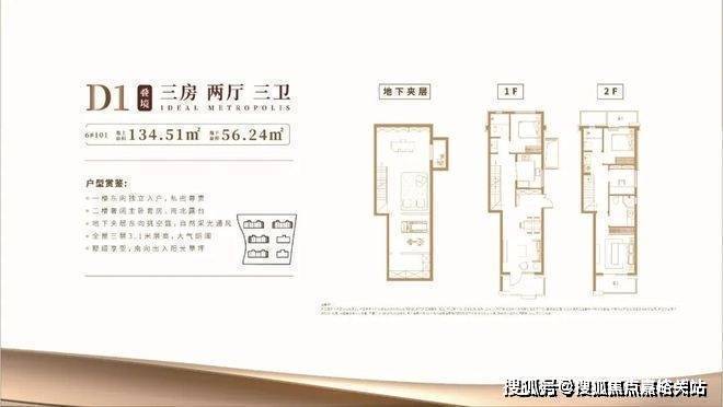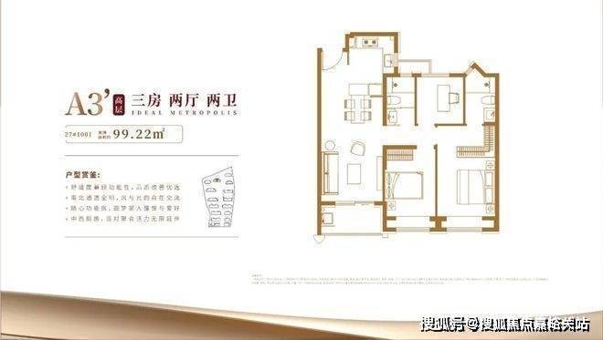 具体细节方面,项目目前只有一个建面约100㎡三房的样板间,带软装后面宽约3.3米,吊顶后层高约2.73米。