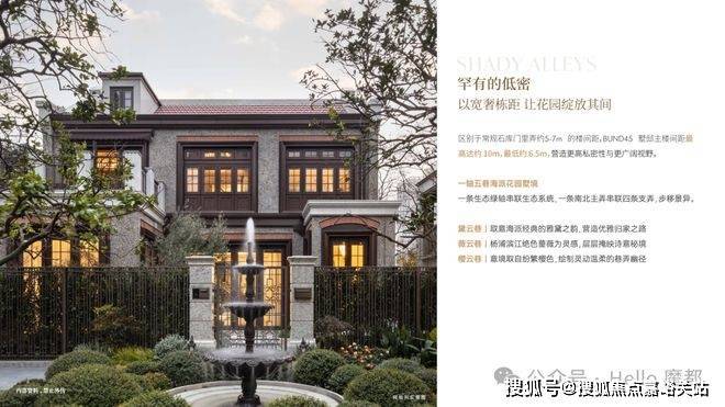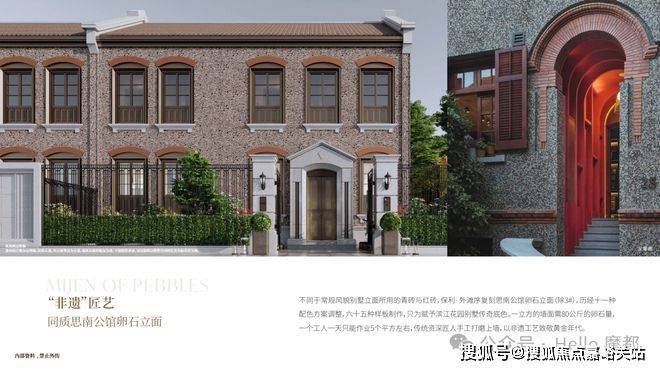 特色:复刻思南公馆风貌,卵石立面工艺,"四行两列"布局,楼间距约6.5-10米。