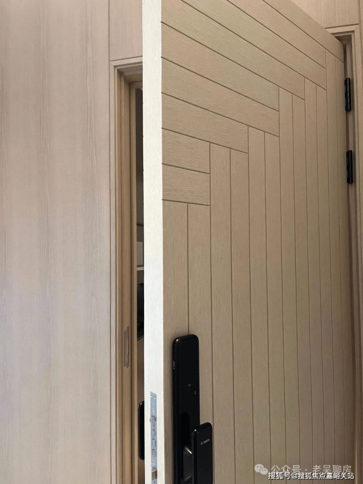 装甲门入户,升级的门板厚度,搭配德国博世(或同等档次品牌)智能锁,带来沉稳安全的厚重质感, 每次开启都身份感满满