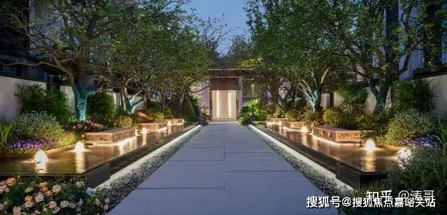 踏入门庭内部是精致的归家水景,通过泛星灯光、艺术景墙的点缀,营造出了豪宅品质的强大气场。
