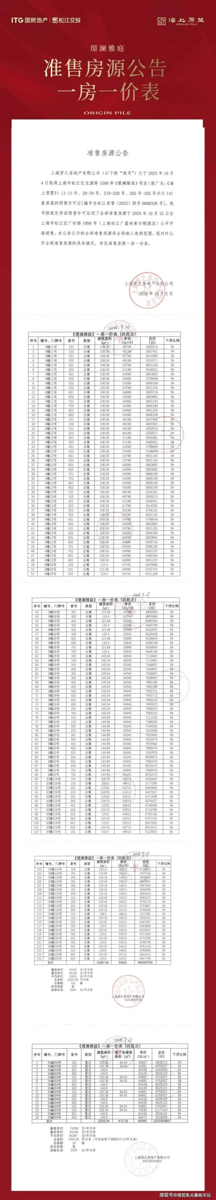 据悉,松江广富林墅居标杆【国贸海上原墅】四批次已过会,加推建面约105-150㎡洋房、叠加,均价54667元/㎡,正在认购中