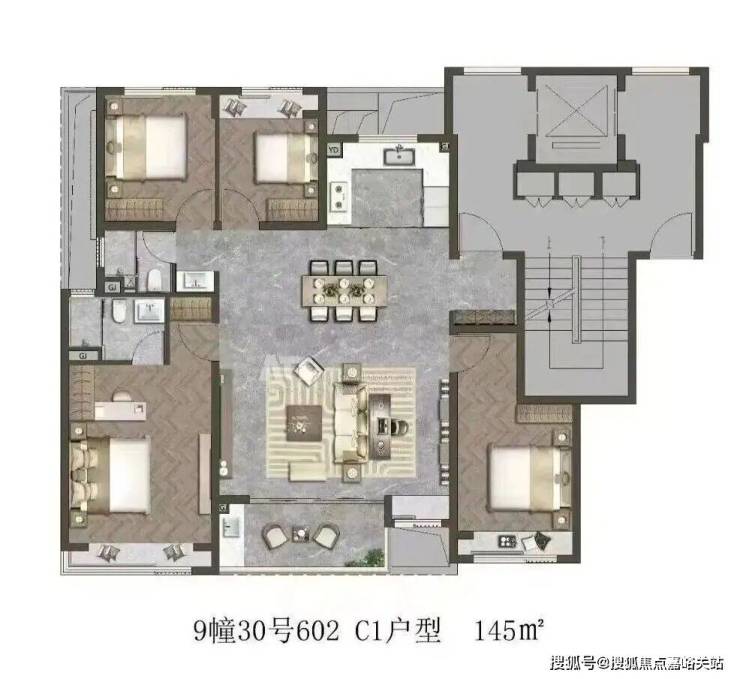 国贸海上原墅建面145㎡4房样板间实拍视频: