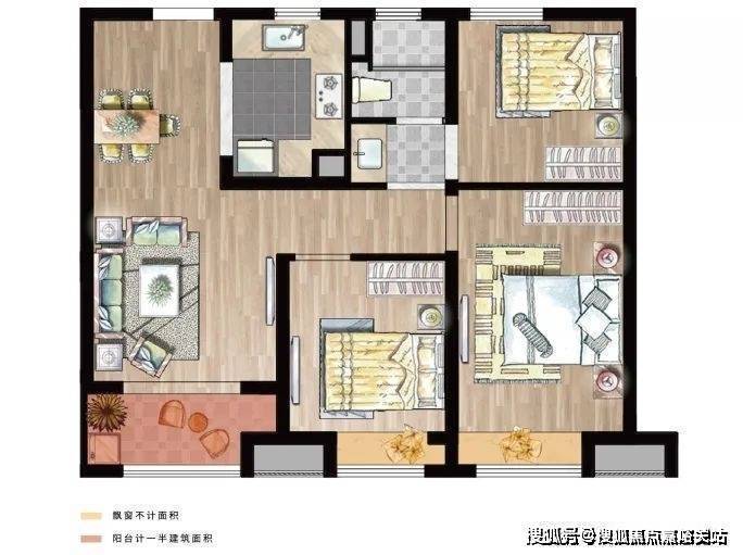 3房2厅1卫,在当下2卫风靡的情况下看似不太行,但其实是开发商对市场进行了深入研究,才得出这样实用的配置。